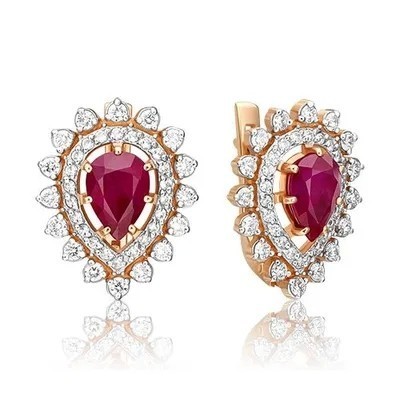 PLATINA Серьги с английским замком из красного золота 585 пробы c рубином и бриллиантами